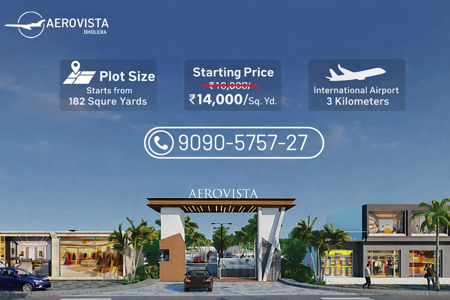 Aerovista Dholera offers premium residential and commercial plots in the heart of Dholera Smart City – India’s first planned greenfield smart city under DMIC.